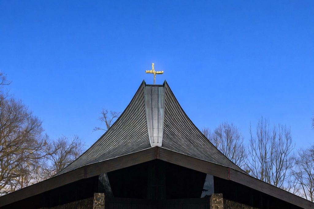 Elle fait penser à la Tente de la Rencontre du livre de l’Exode, lieu de la Présence de Dieu au milieu de son peuple, lieu de la Rencontre entre Moïse et le Dieu de l’Alliance, lieu de rencontre de la communauté chrétienne, ouverte aux autres traditions croyantes du quartier. Mais aucune croix n’est installée en son sommet…